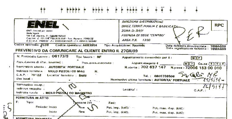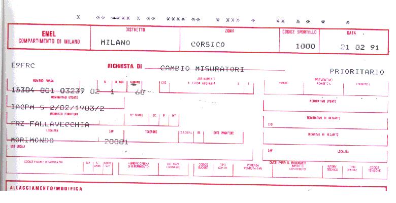 All the documents printed by ENEL those days were continuous module printed forms, filled